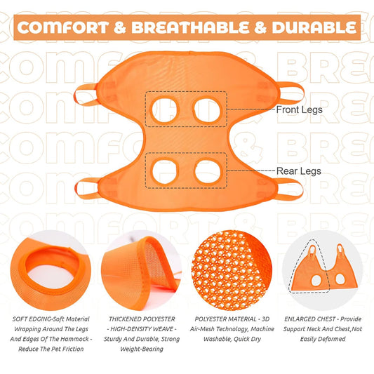 Dog Grooming Hammock Harness for Dog, 12 in 1 Durable Dog Hammock, Breathable Pet Grooming Hammock Helper for Grooming, Hair/Ear/Eye/Teeth Care, Nail Trimming,Orange,L